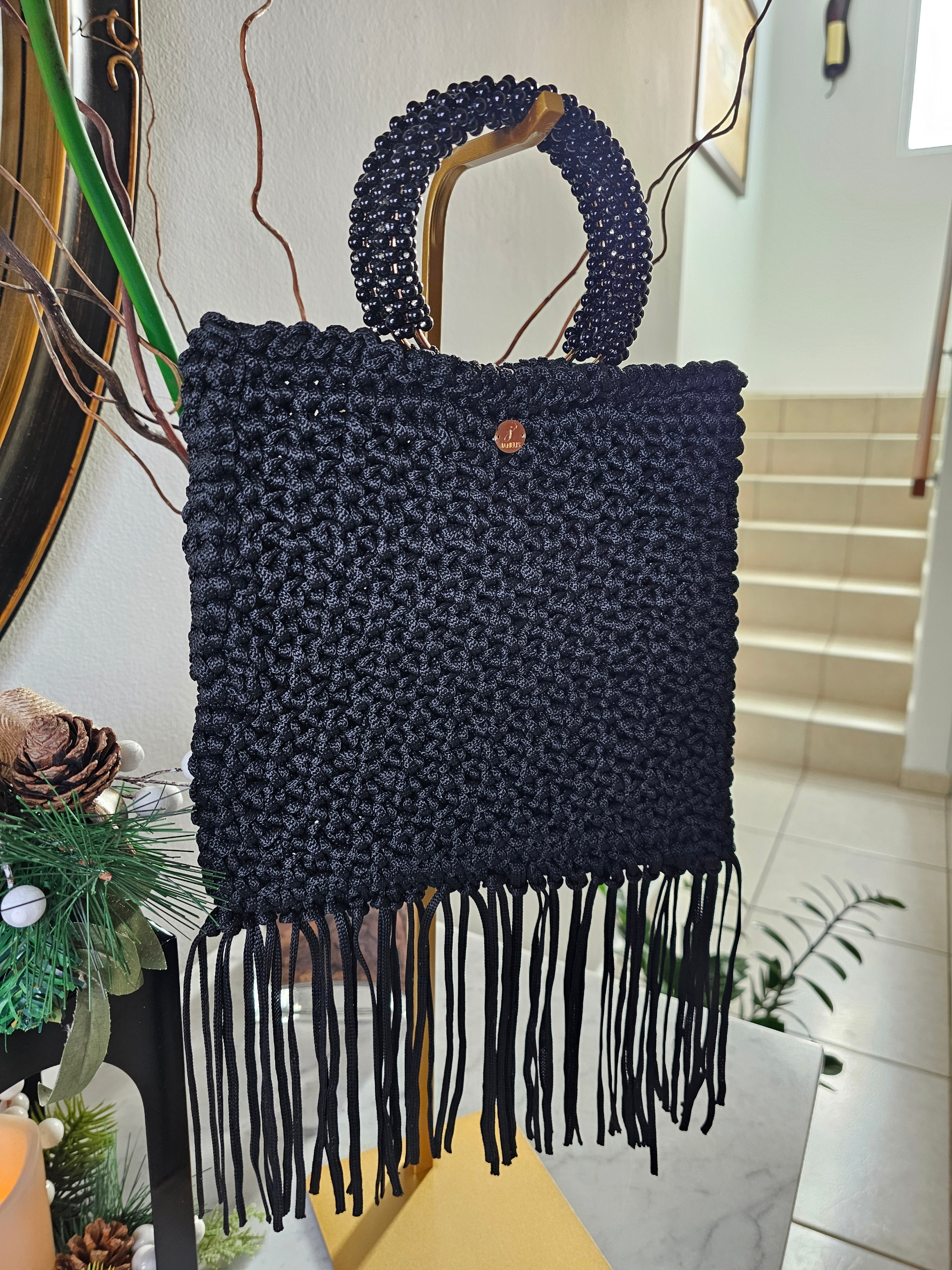 Handmade bag with beaded round handle. Elegant. Transforms any outfit.
