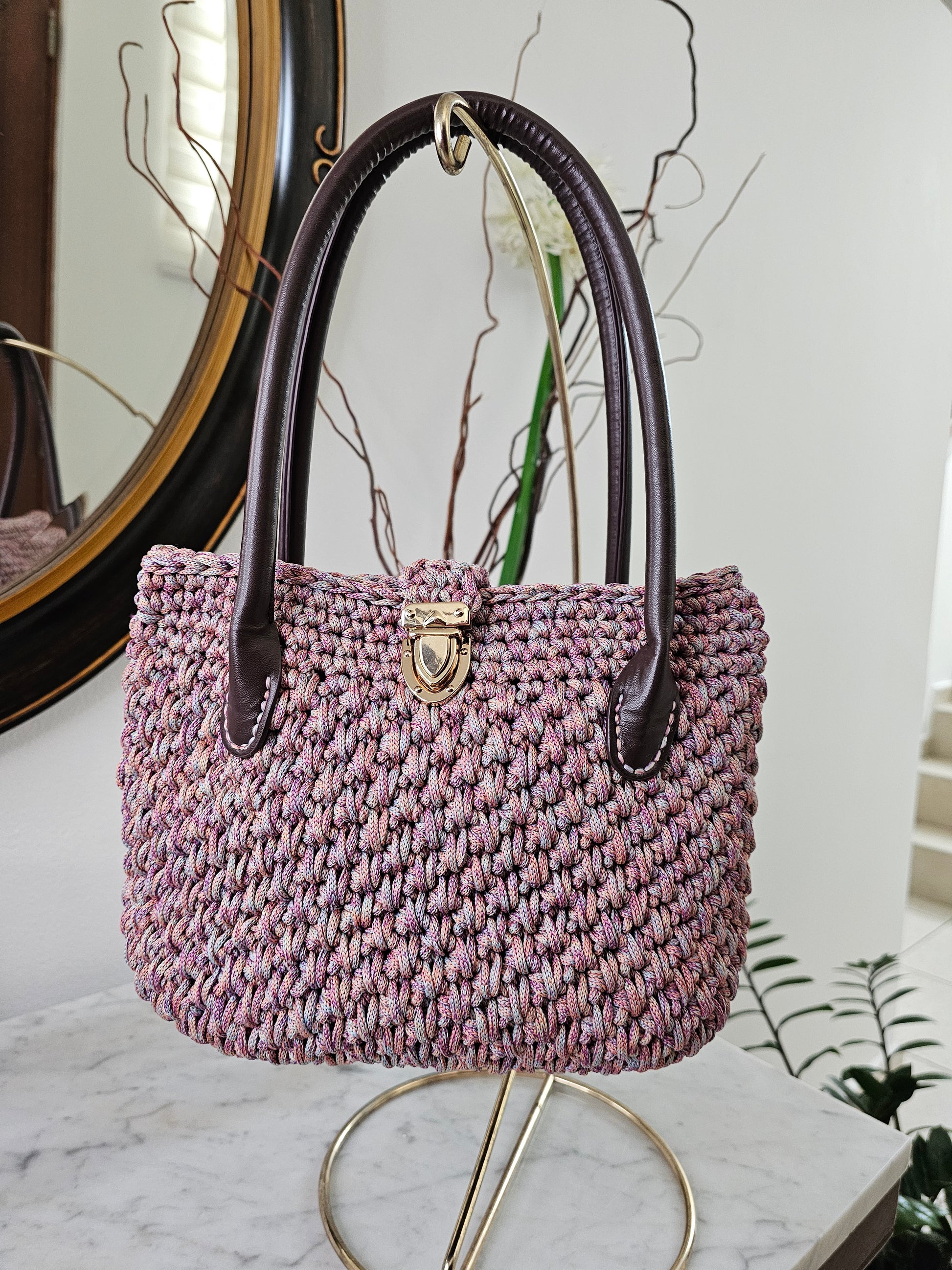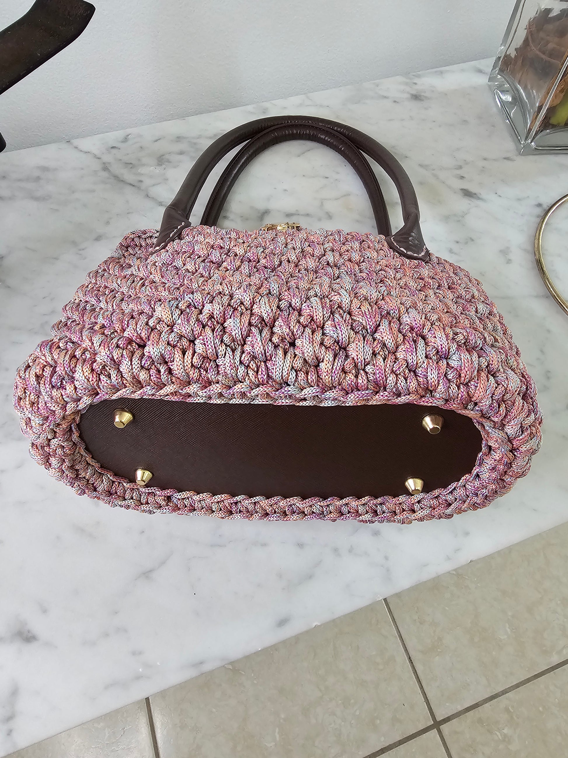 Made with polymacrame cord. Handles and bottom are vegan leather. Elegant and spacious. Perfect for this coming season
