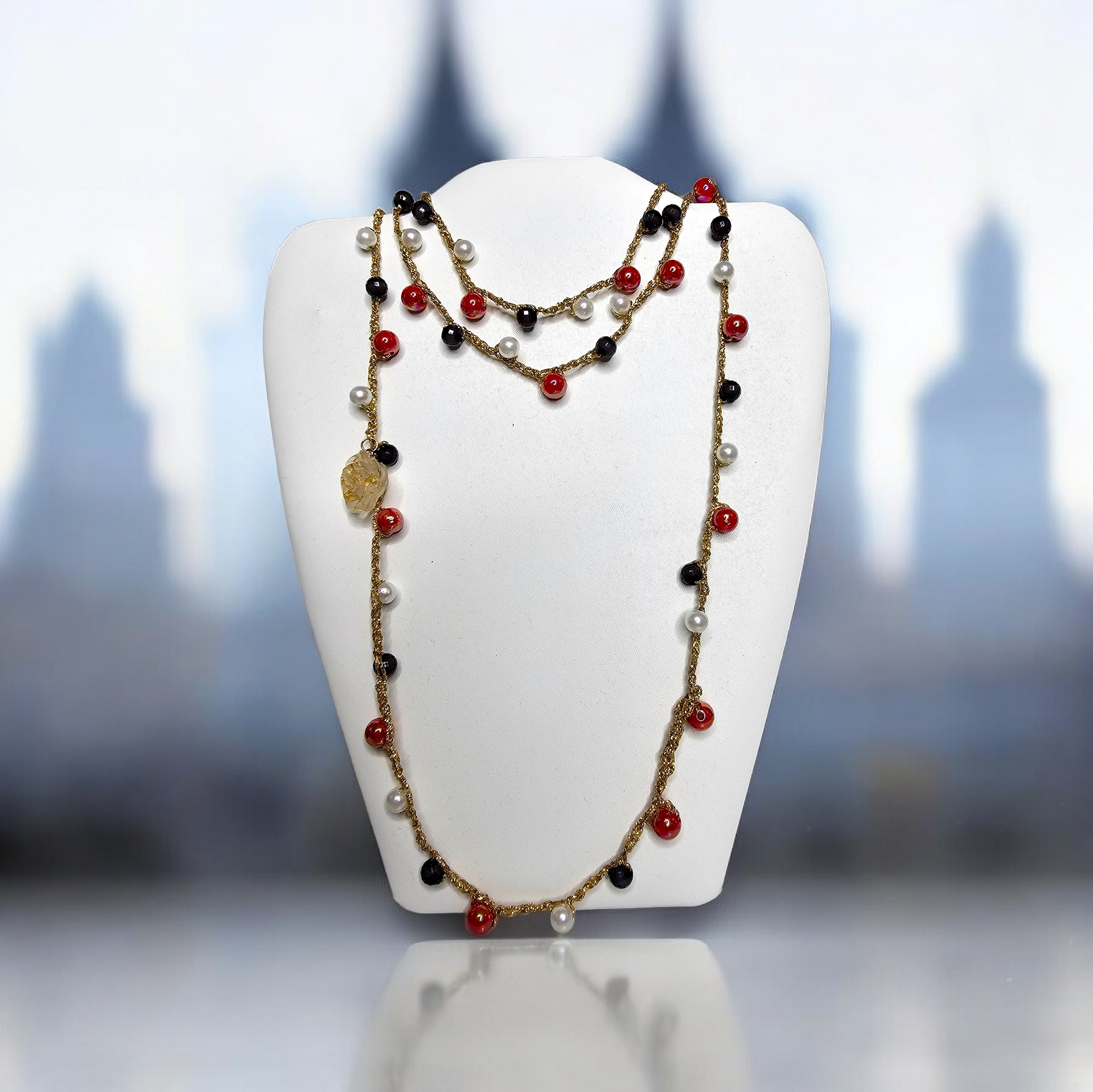 Handmade necklace with beads extra long. Can double it for a layered look. Trending now