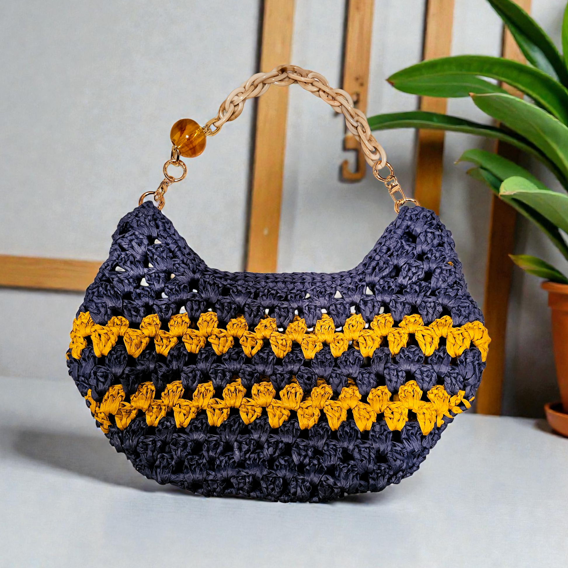 Made with two colors in raffia. Has inner lining and can be used crossbody. Light and unique pattern