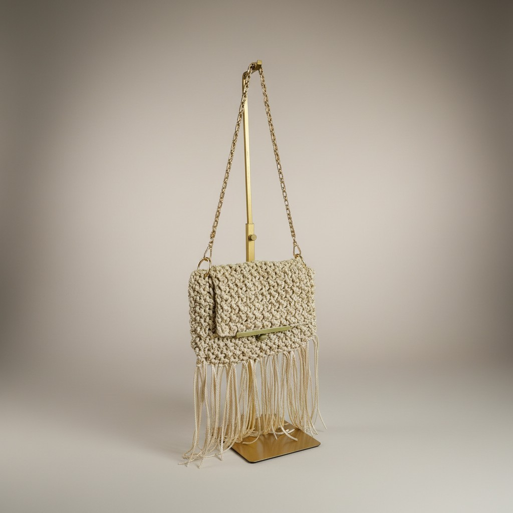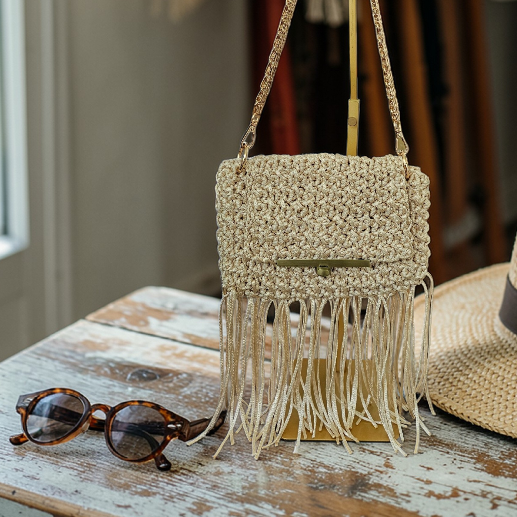 Made with premium cord from Brazil. Has a sutil satin finish. Elegant and feminine. Fringes gives it beautiful movement.